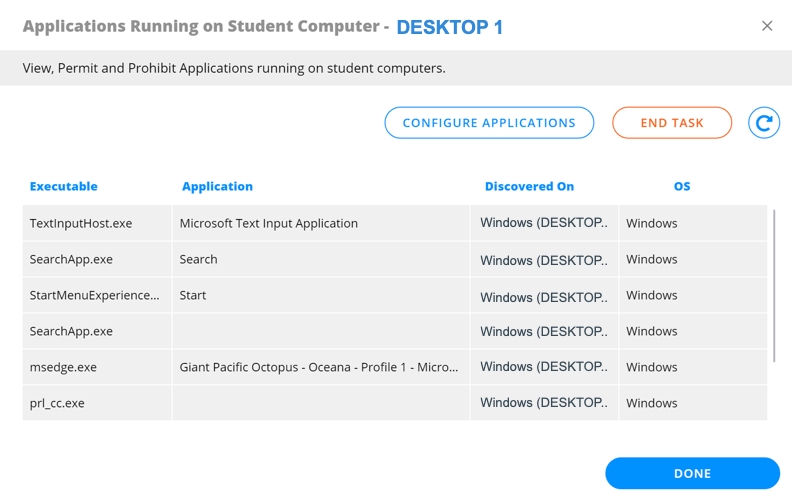 Selecteer ten minste één toepassing en klik op Taak beëindigen. De toepassing wordt nu niet meer uitgevoerd op de computer van de student.
