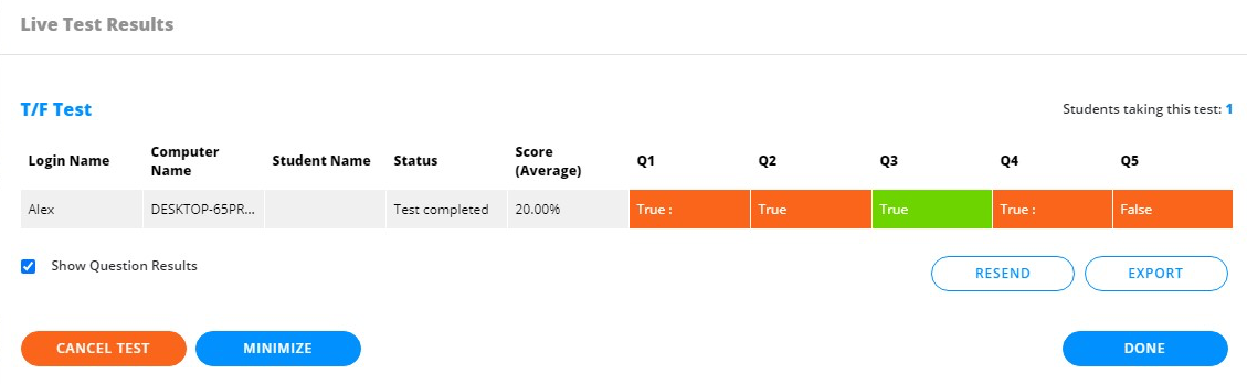 Via het venster Live toetsresultaten kunnen docenten het volgende doen: