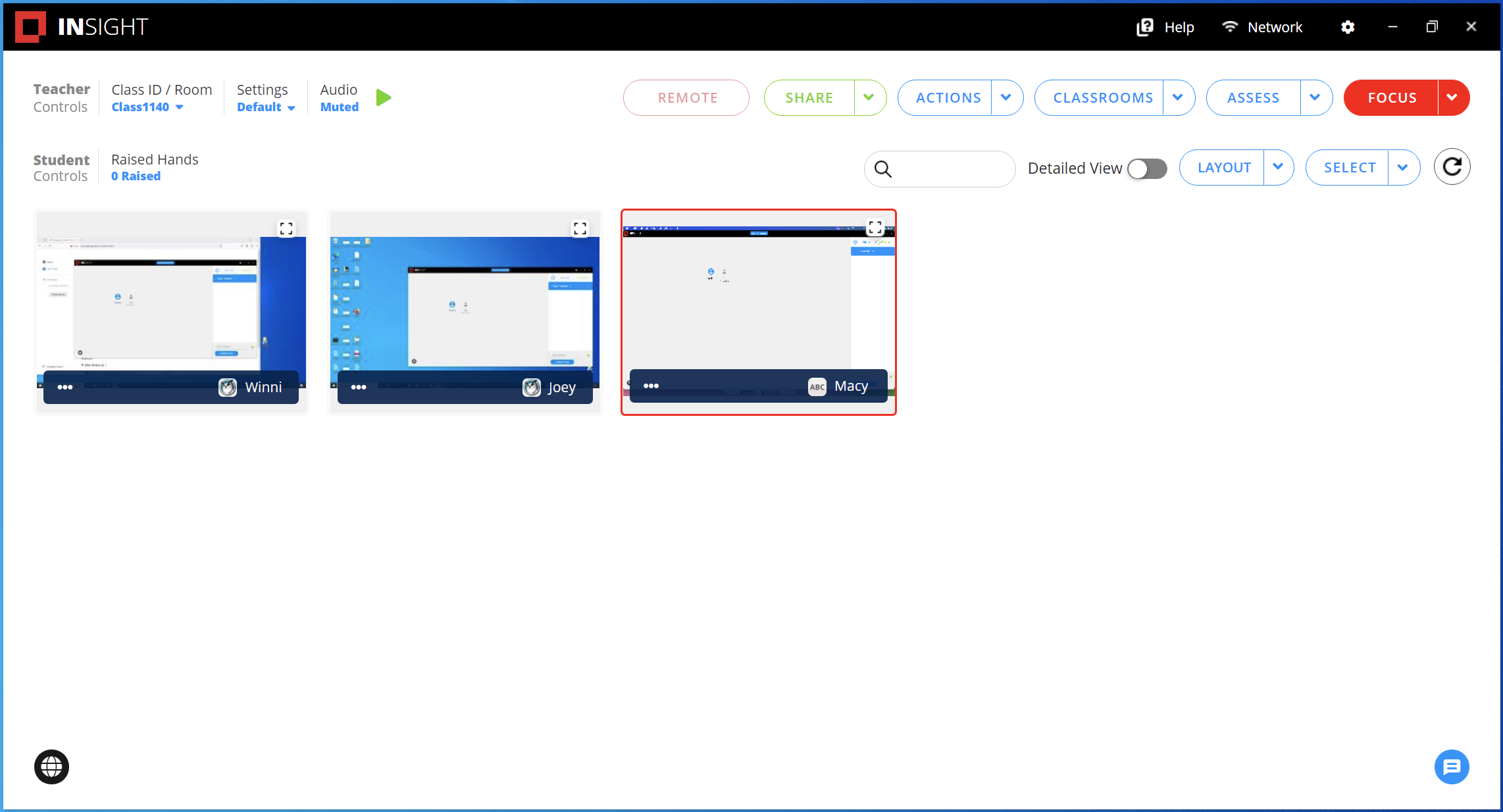 Computers van studenten met actieve focus selecteren