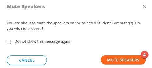 De docent kan de speakers op de computers van studenten dempen en het dempen opheffen.