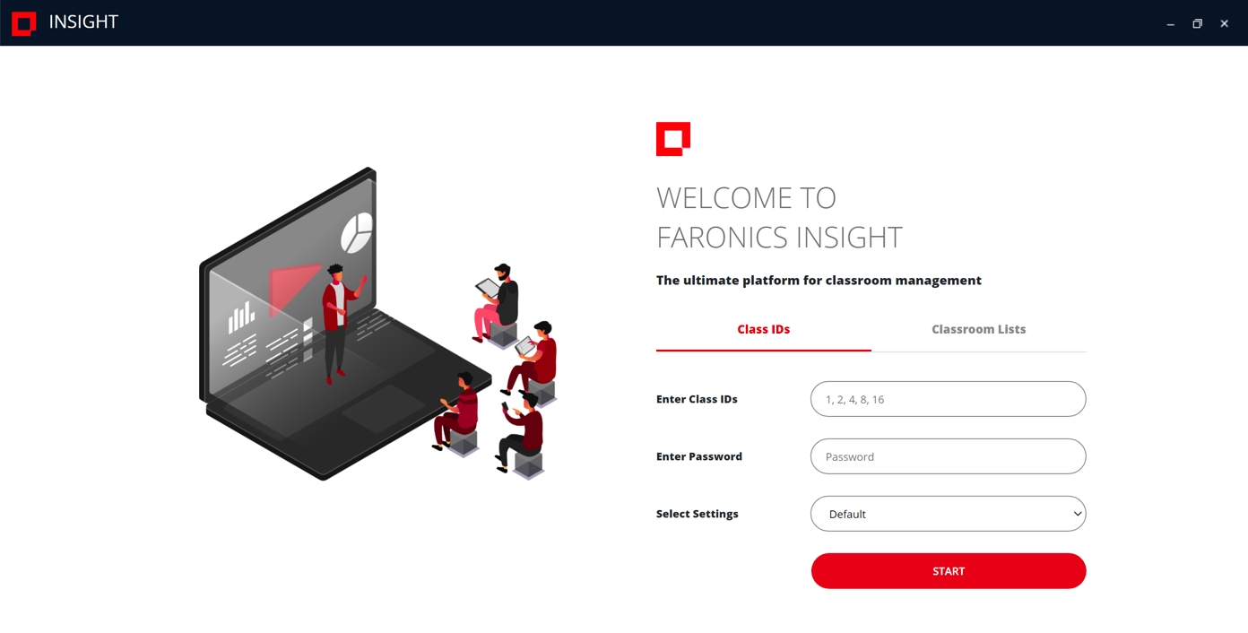 Het scherm van de docent toont het aanmeldingsscherm.