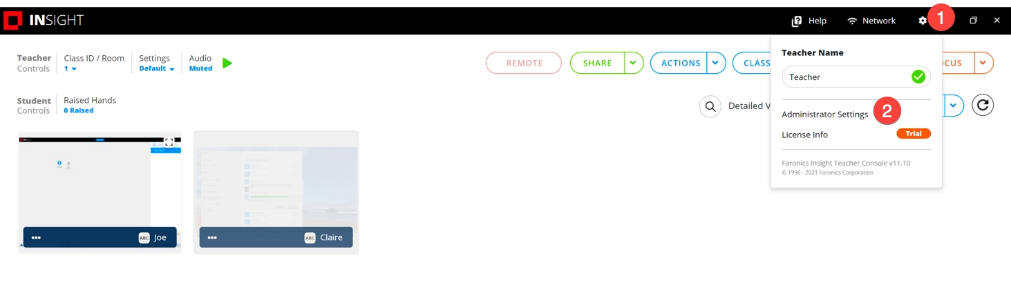 De docentenconsole is nu ingesteld voor Insight Connector. Op de docentenconsole kun je nu de computers van studenten zien die zijn geconfigureerd om met Insight Connector te communiceren.