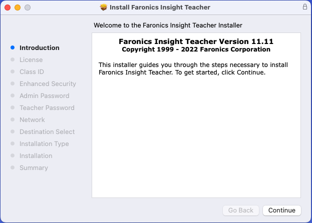 Zoek de toepassing InsightTeacher.pkg in het exemplaar van Faronics Insight dat je hebt gekregen of gedownload. Dubbelklik op het installatiebestand.
