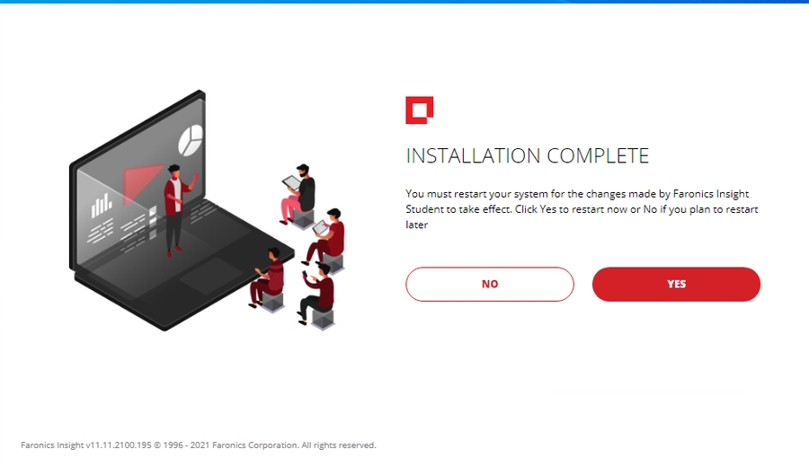 Voor het afronden van de installatie moet je de computer opnieuw opstarten. We raden aan het opnieuw opstarten uit te voeren voordat je de docentenconsole gebruikt..