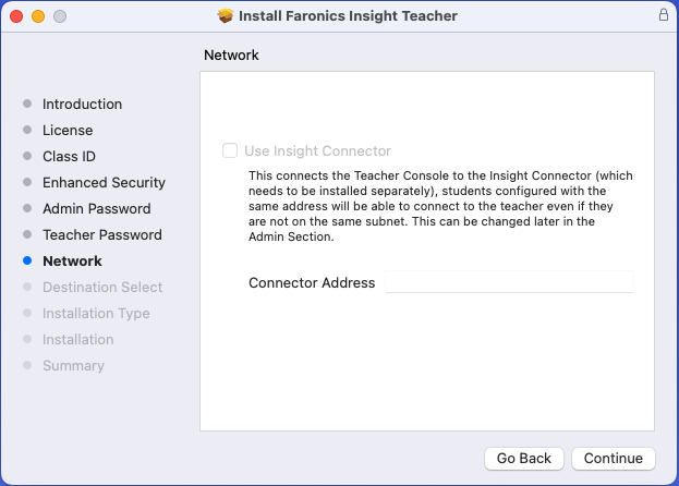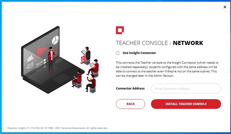Insight Connector moet worden geïnstalleerd op een computer in het netwerk dat toegankelijk is voor alle computers van docenten en studenten (op hetzelfde netwerk). Het fungeert als de server of de link tussen studenten en docenten.