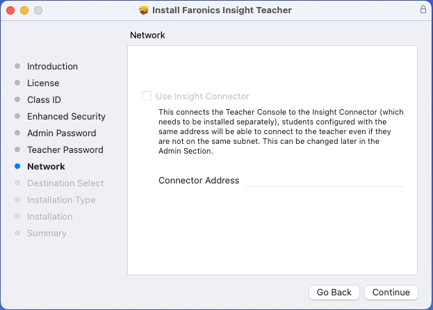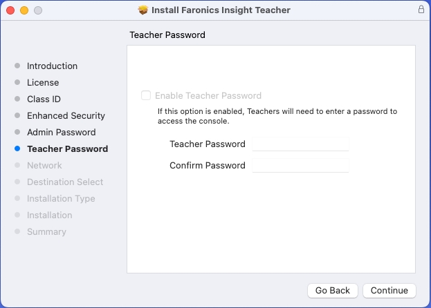 Voer een docentenwachtwoord in en bevestig het om toegang tot de console van Insight Teacher te beveiligen. Klik op Ga door.