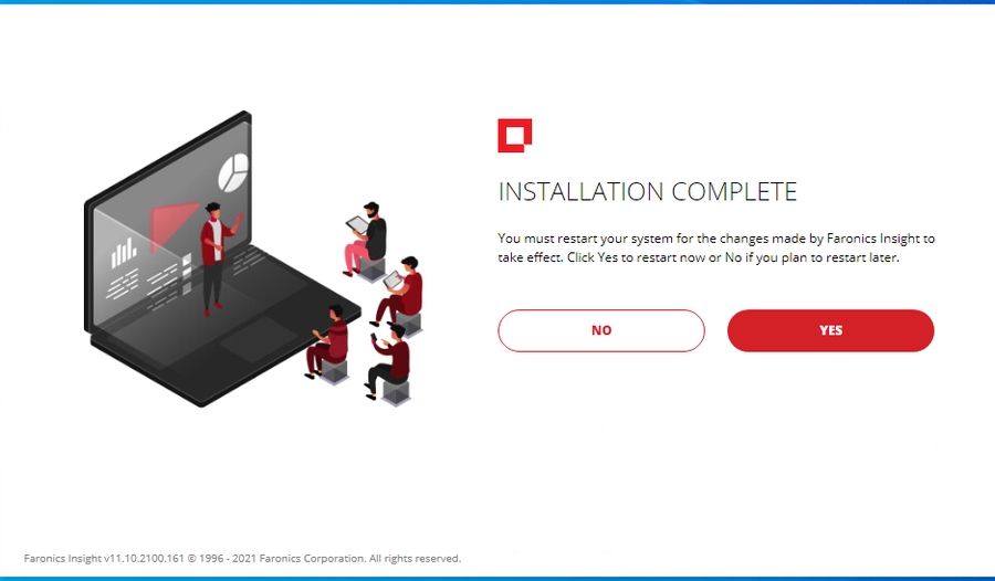 Klik op Ja om de computer opnieuw op te starten en de installatie te voltooien.