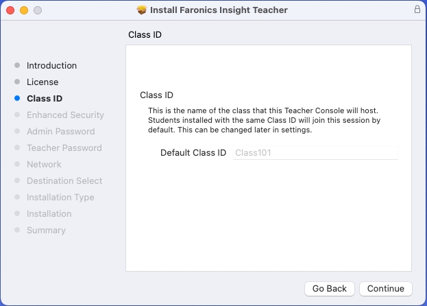 Tijdens de installatie van Insight Teacher en Insight Student wordt je gevraagd een les-ID aan het apparaat toe te wijzen.