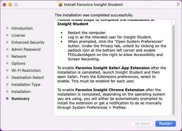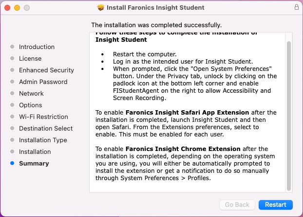 Je kunt na de installatie de extensies inschakelen.Voor Safari: Als je de appextensie van Faronics Insight voor Safari wilt inschakelen, start je Insight Student en open je Safari. Schakel de extensie in de voorkeuren voor extensies in. Het inschakelen van de extensie in Safari is een eenmalige handeling, maar moet wel voor elke gebruiker gebeuren.