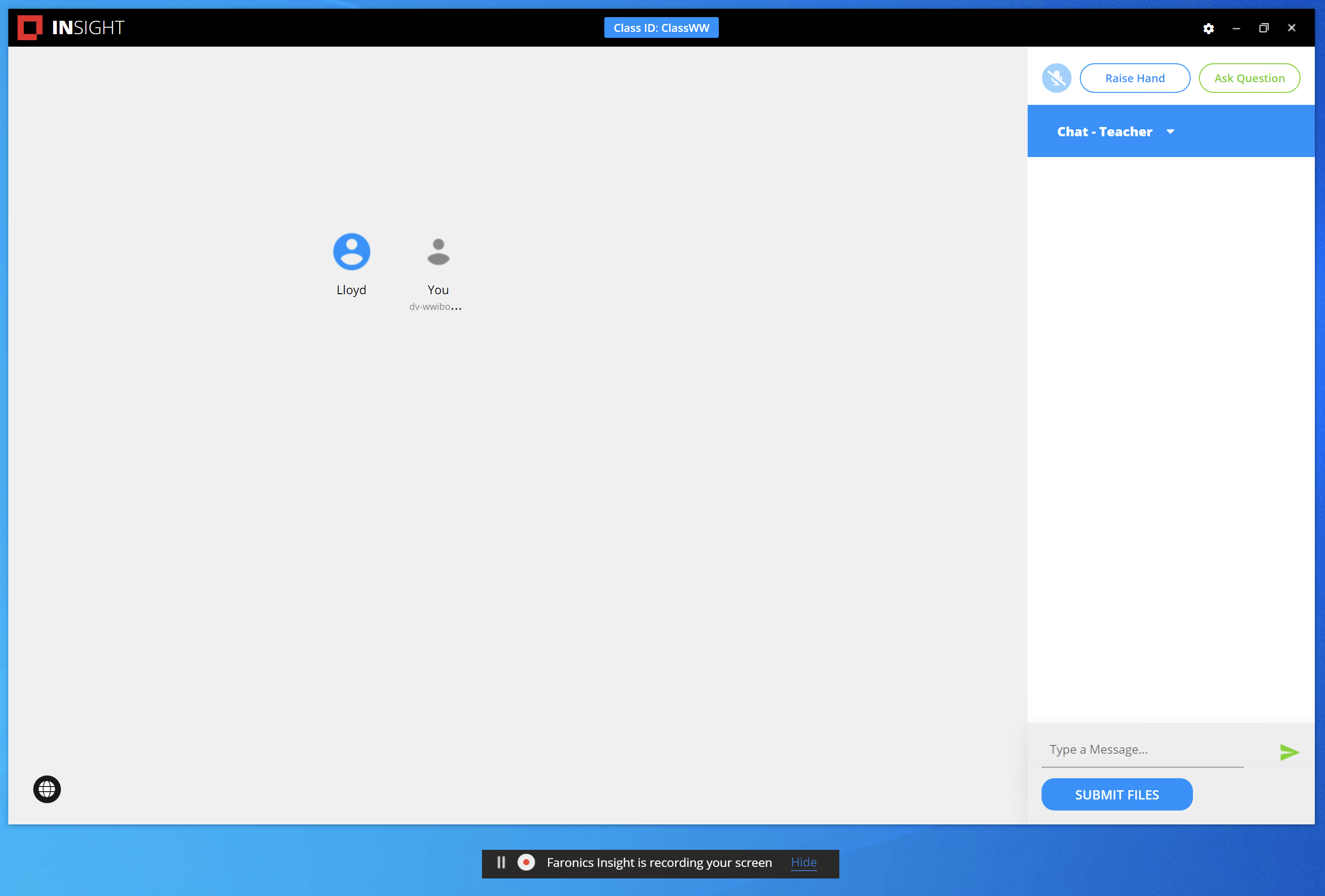 Die Schüler können die Aufzeichnungsleiste auch ausblenden, indem sie auf Ausblenden klicken. Beachten Sie, dass die Aufzeichnungsleiste nicht mehr eingeblendet werden kann, wenn sie einmal ausgeblendet wurde.