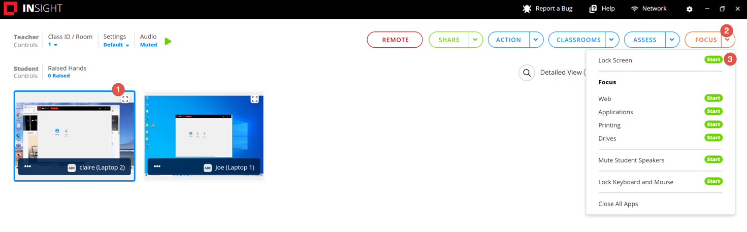 教師がロックスクリーンのためにフォーカスの制限を有効にすることを選択した場合、クラスのために設定および選択されたロックスクリーン設定はすべて生徒のコンピュータに適用されます。現在のクラスに対して作成または選択された設定が存在しない場合、デフォルトの設定が適用されます。
