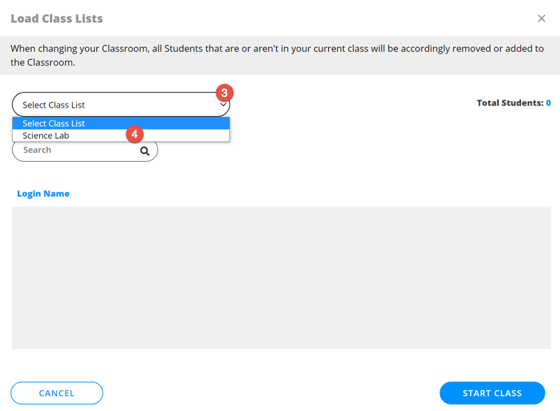 3. *クラスリストの選択*ドロップダウンリストをクリックします。