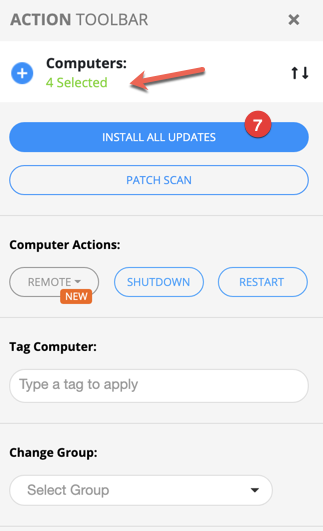 6\. Click the Computer Name **column header**, and the **ACTION TOOLBAR** will appear.